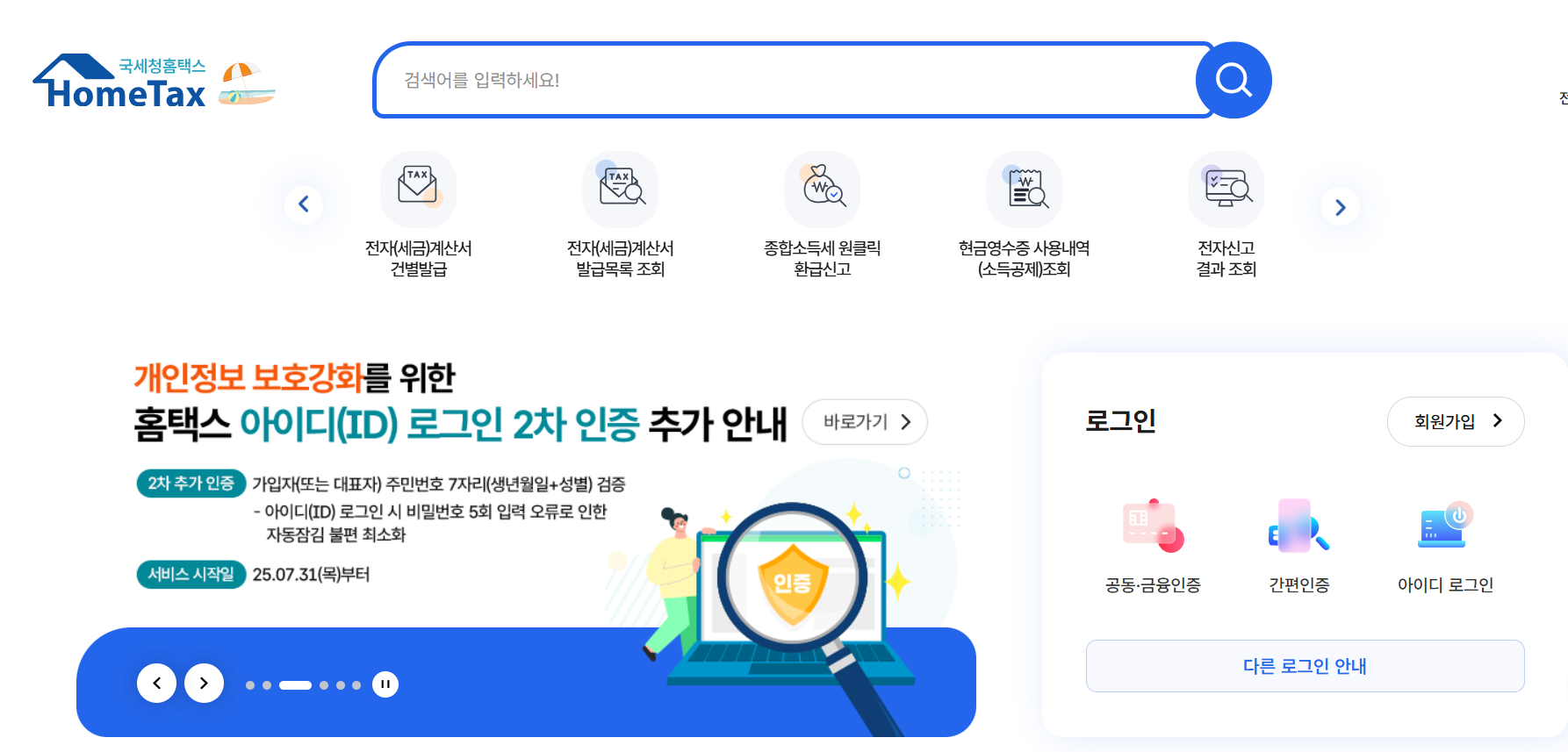 1. 홈택스 접속 → 로그인 (공동인증서 또는 간편인증)