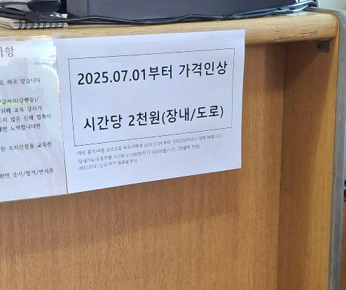 2025년 7월 1일부터 수강료가 인상되어 시간당 2,000원이 추가됐네요.