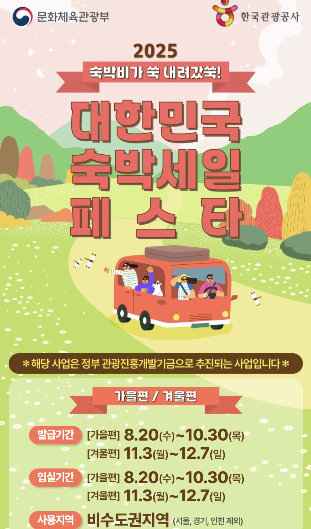 | 가을편 | 2025.08.20 ~ 10.30 | 2025.08.20 ~ 10.30 | 비수도권 | 2~3만원 |